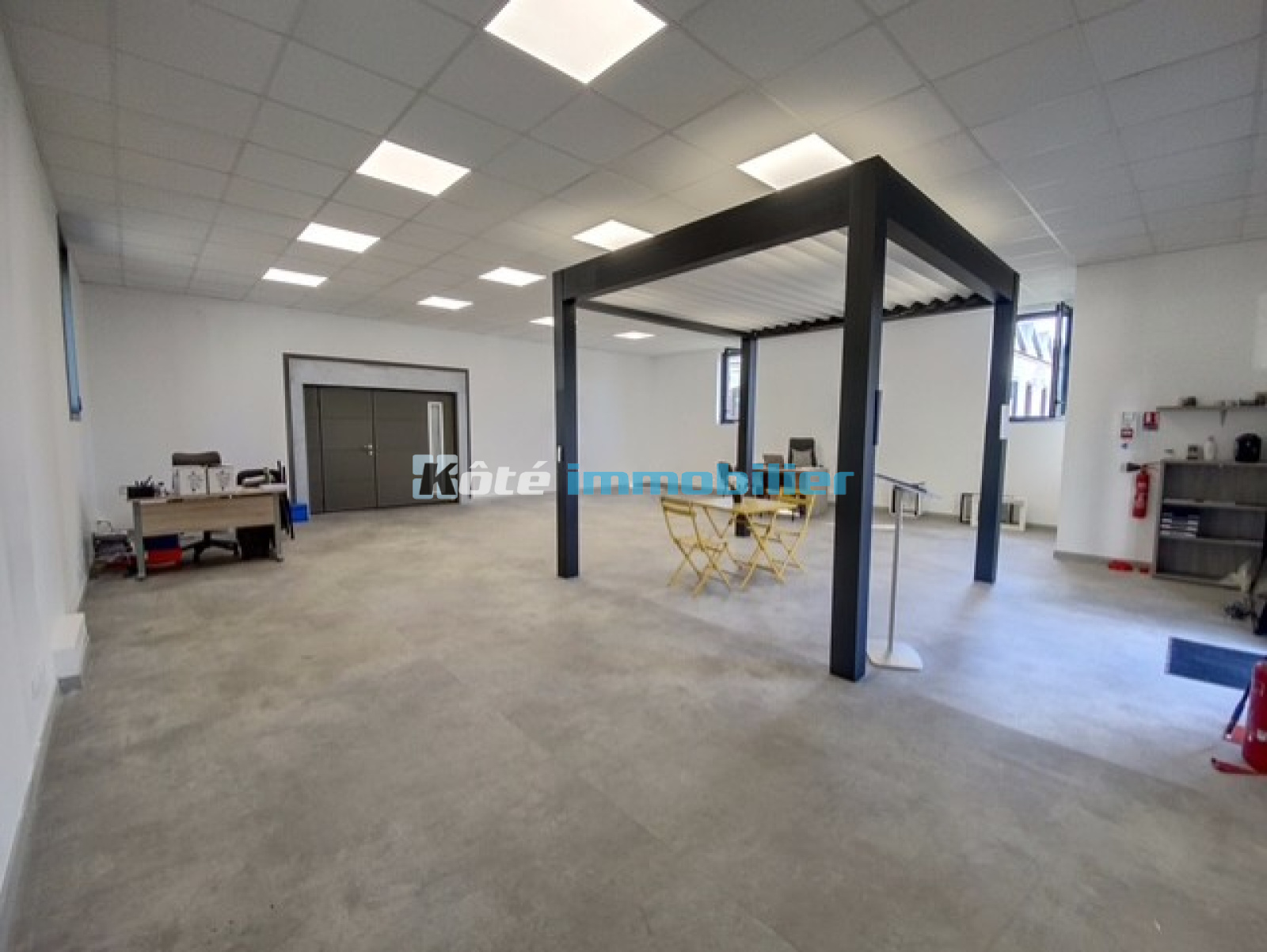 1er niveau : un espace bureau de 93 m² isolation et électricité neuves, fenêtre avec double vitrage anti-effraction - volets roulants et local sanitaires .
