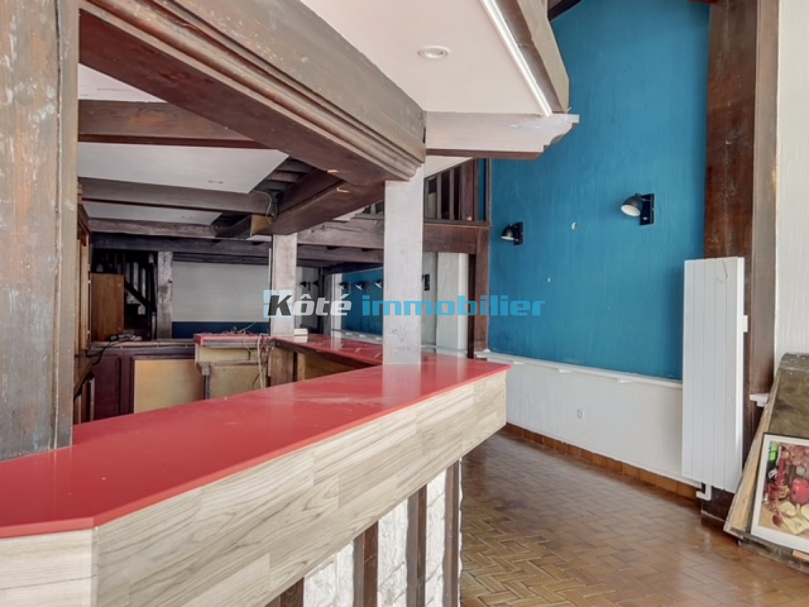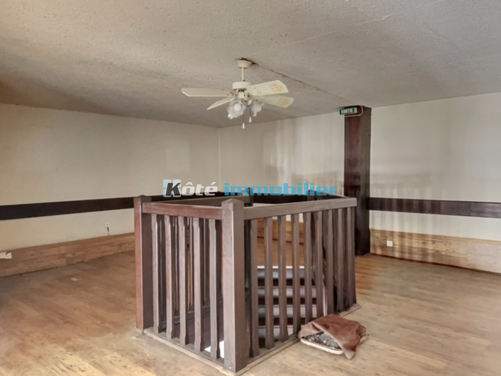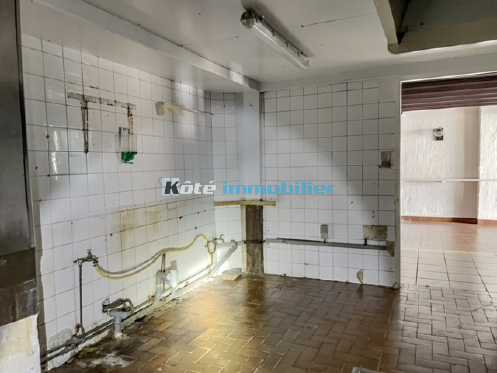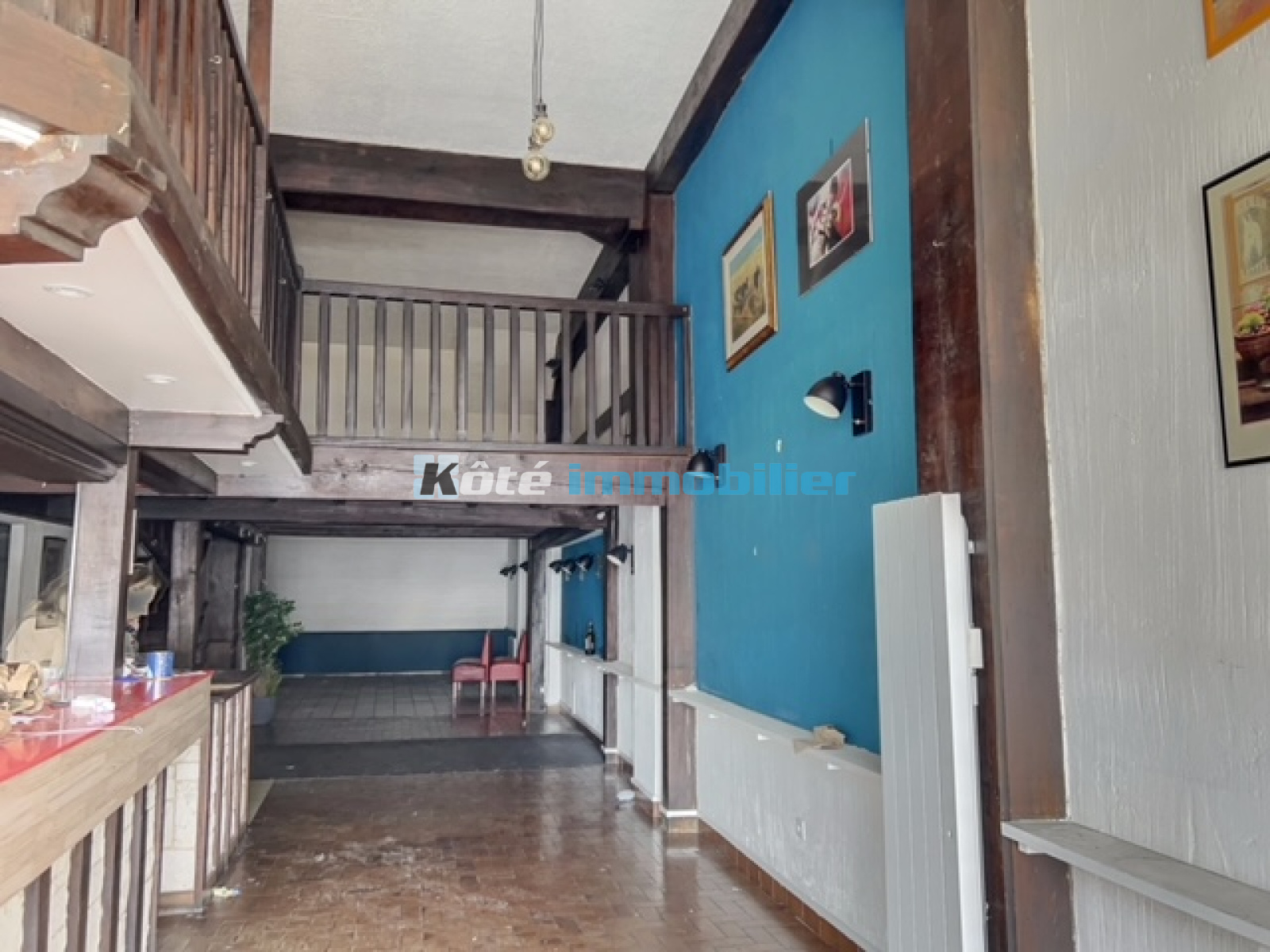 Local commercial centre-ville de 194m² avec local, cuisine, WC et mezzanine.