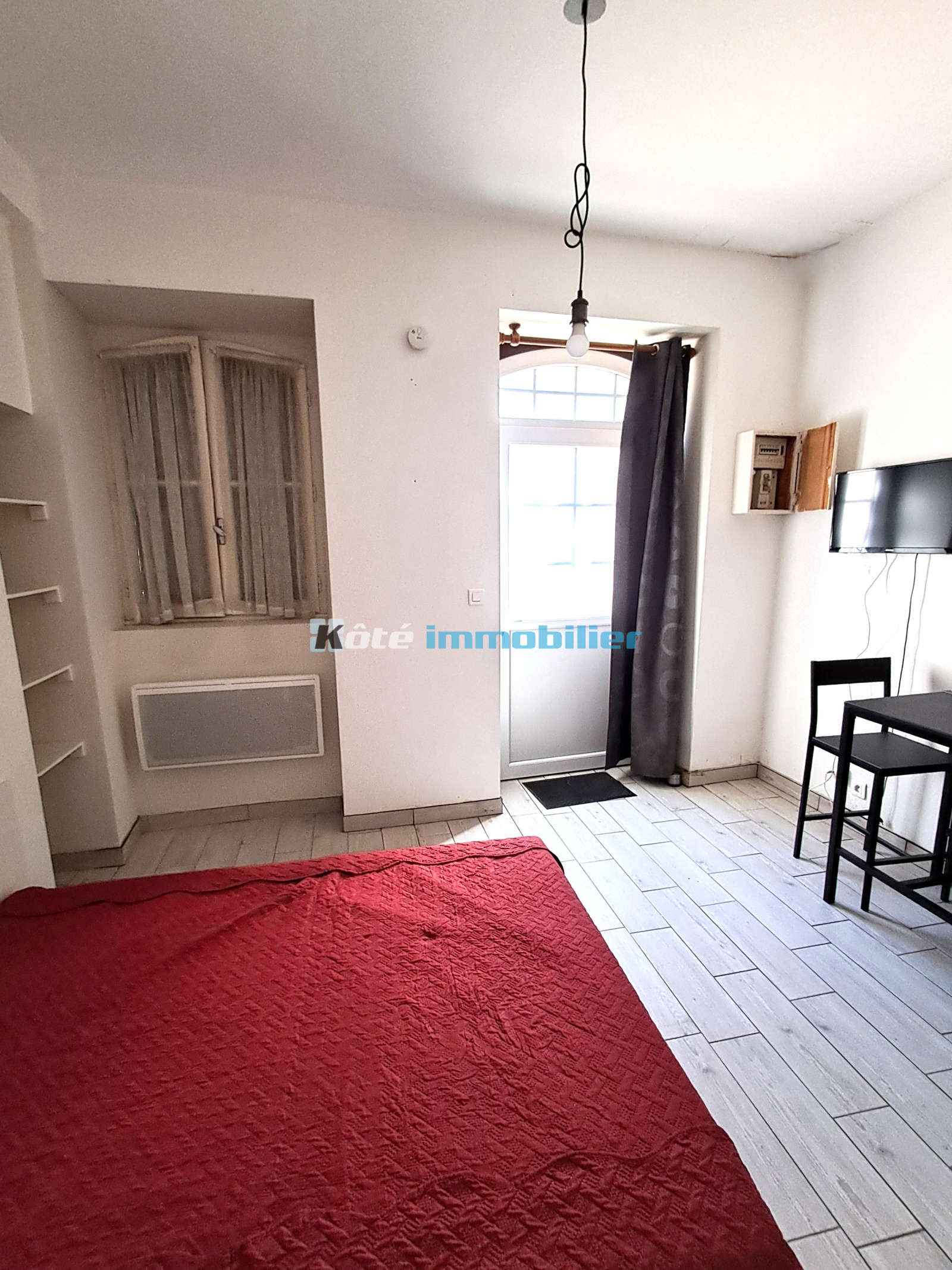 Tarbes centre, studio meublé de 18.64 m2, bon état, dans petite copropriété, quartier de la Préfecture. Ce studio se trouve au rez-de-chaussée de la résidence donnant sur la cour fleurie. Calme assuré. Il se compose d'une pièce principale avec 1 grand lit, 1 table avec chaises, 1 TV murale, 1 meuble étagère et un placard mural.