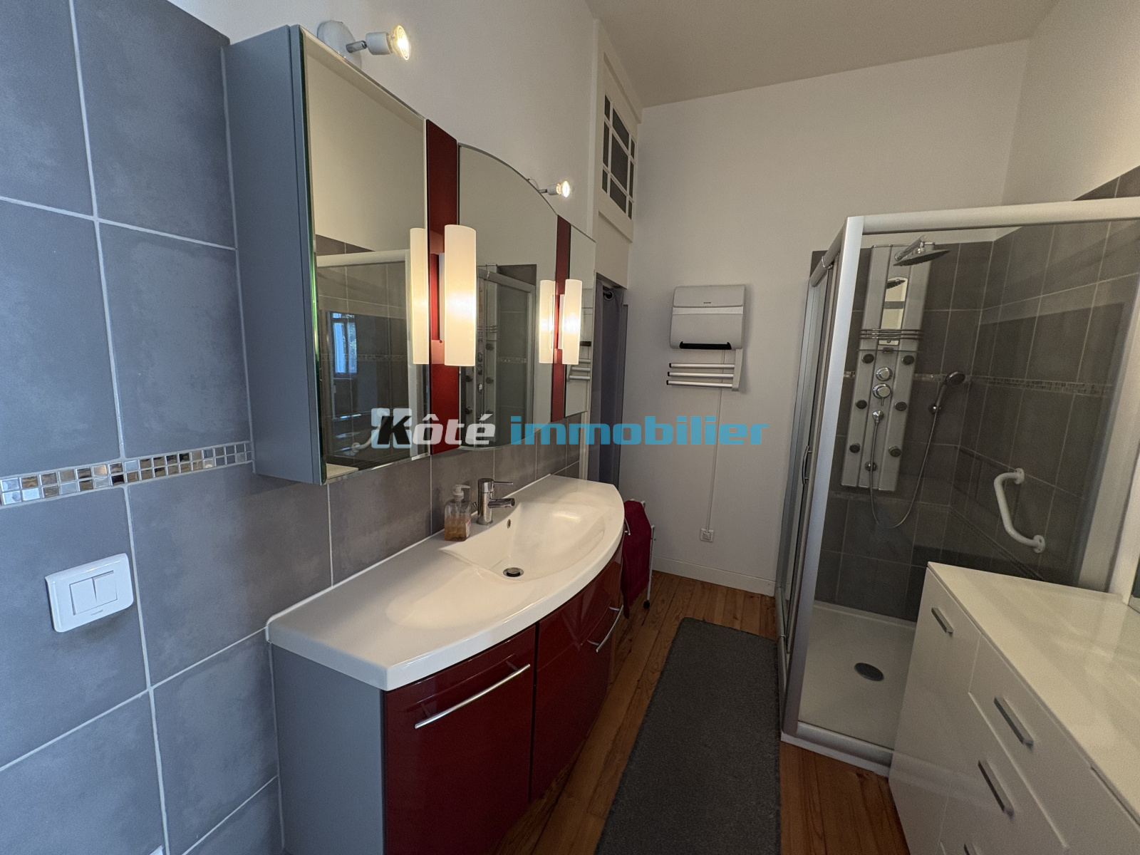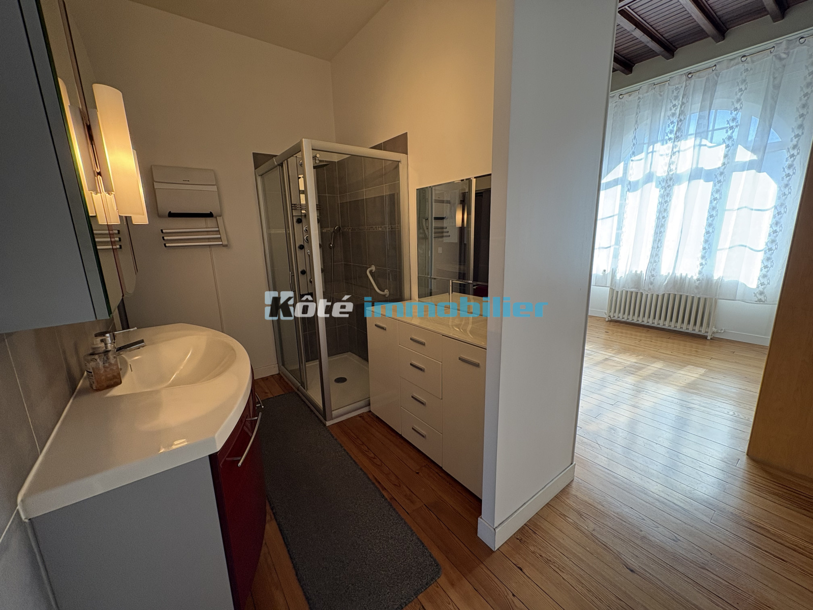 A l'étage : trois chambres confortables, un bureau et une salle de bain de 10 m² avec WC