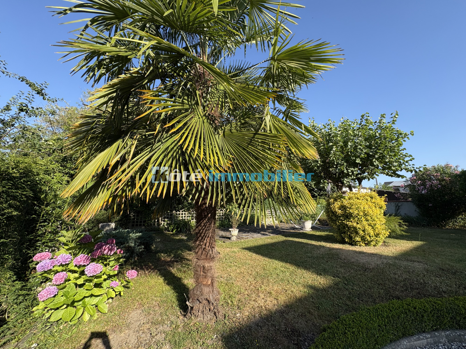 Une agréable terrasse donnant sur un jardin joliment arboré, parfait pour profiter de moments en famille ou entre amis