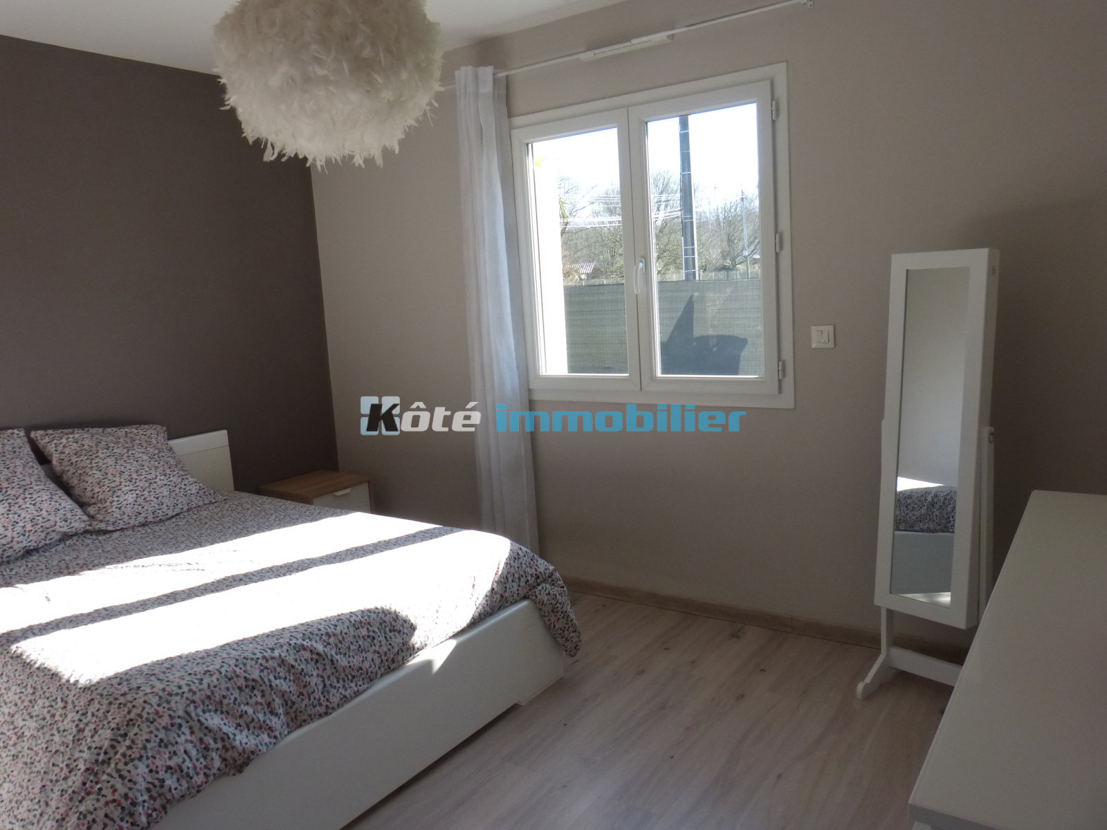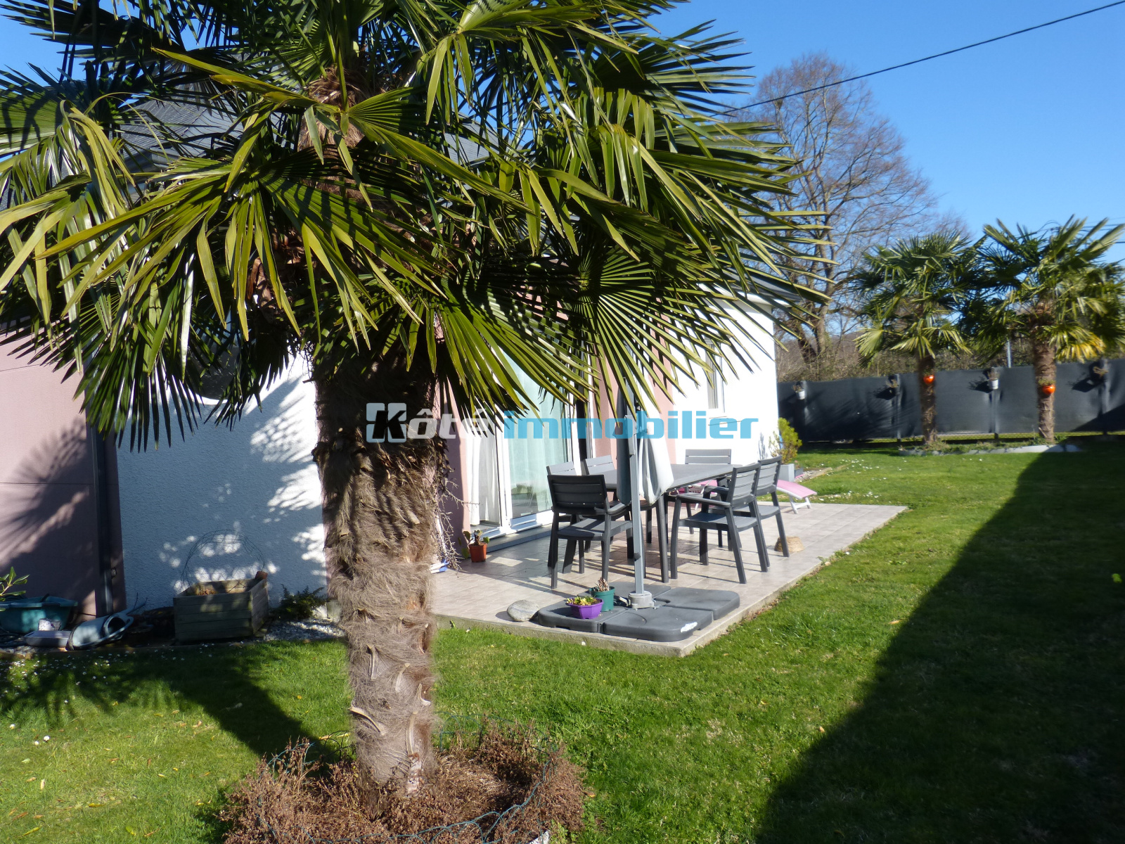 Pontacq, jolie maison de plain pied de 2015, d'une surface de 91.27 m2 , lumineuse, offrant de belles prestations, bâtie sur un terrain de clos et arboré de 600 m2, située dans un quartier calme.